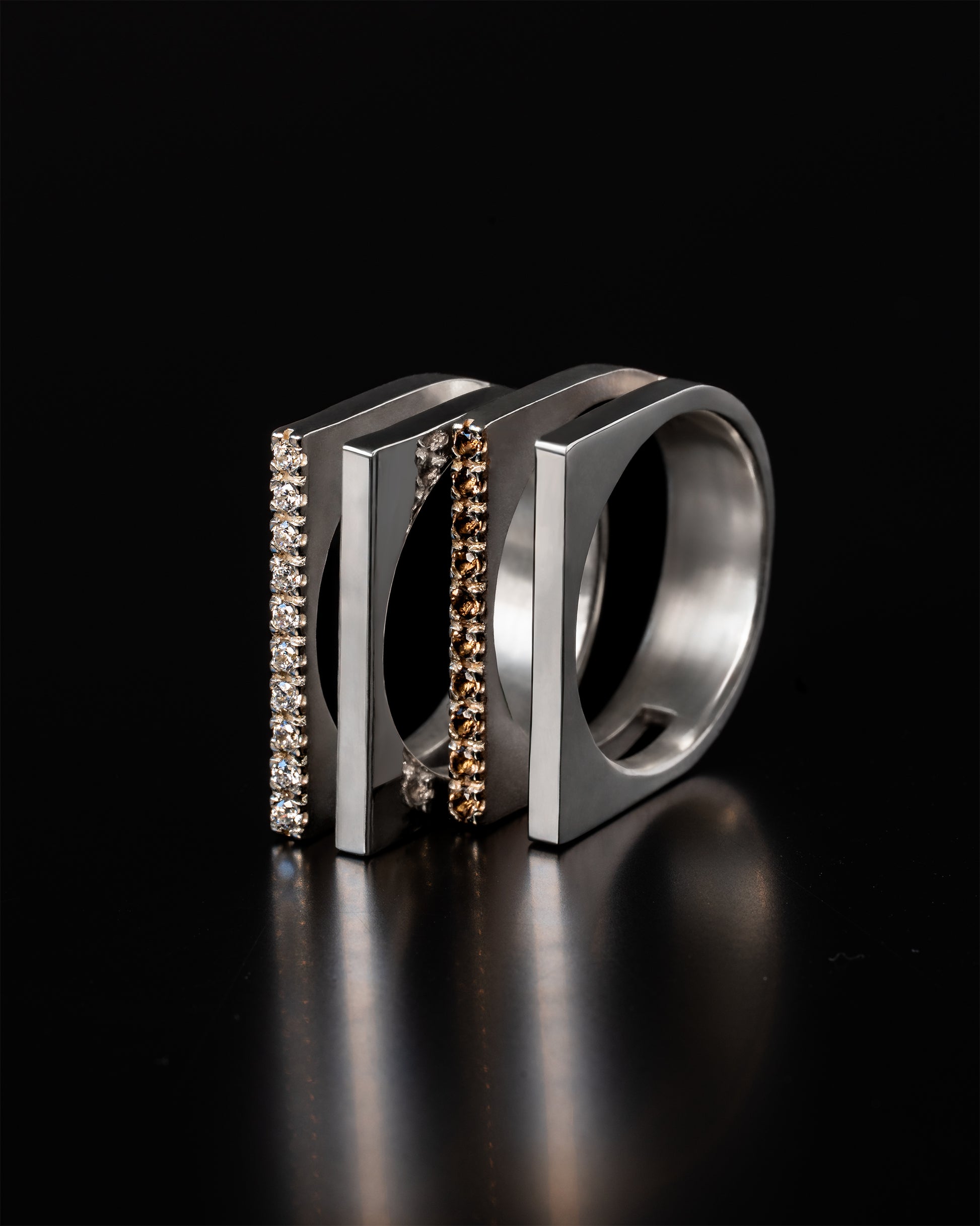 “Liminal-Duo Ring Grint"は、光の線と無垢な線の対照的な2つが並び調和と自由を描き出し、その境界に宿る輝きは、軽やかに揺らぎ、纏う人の感情とともに新しい表情を見せます。